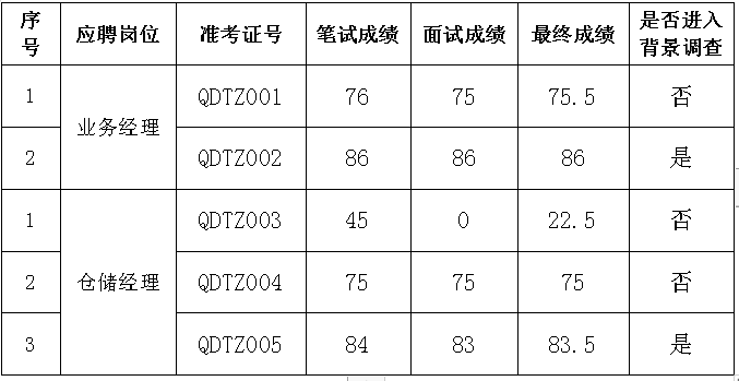 根据威海齐东投资有限公司招聘方案和招聘计划,现将2024年3月26日劳务派遣制员工招聘结果公布如下: